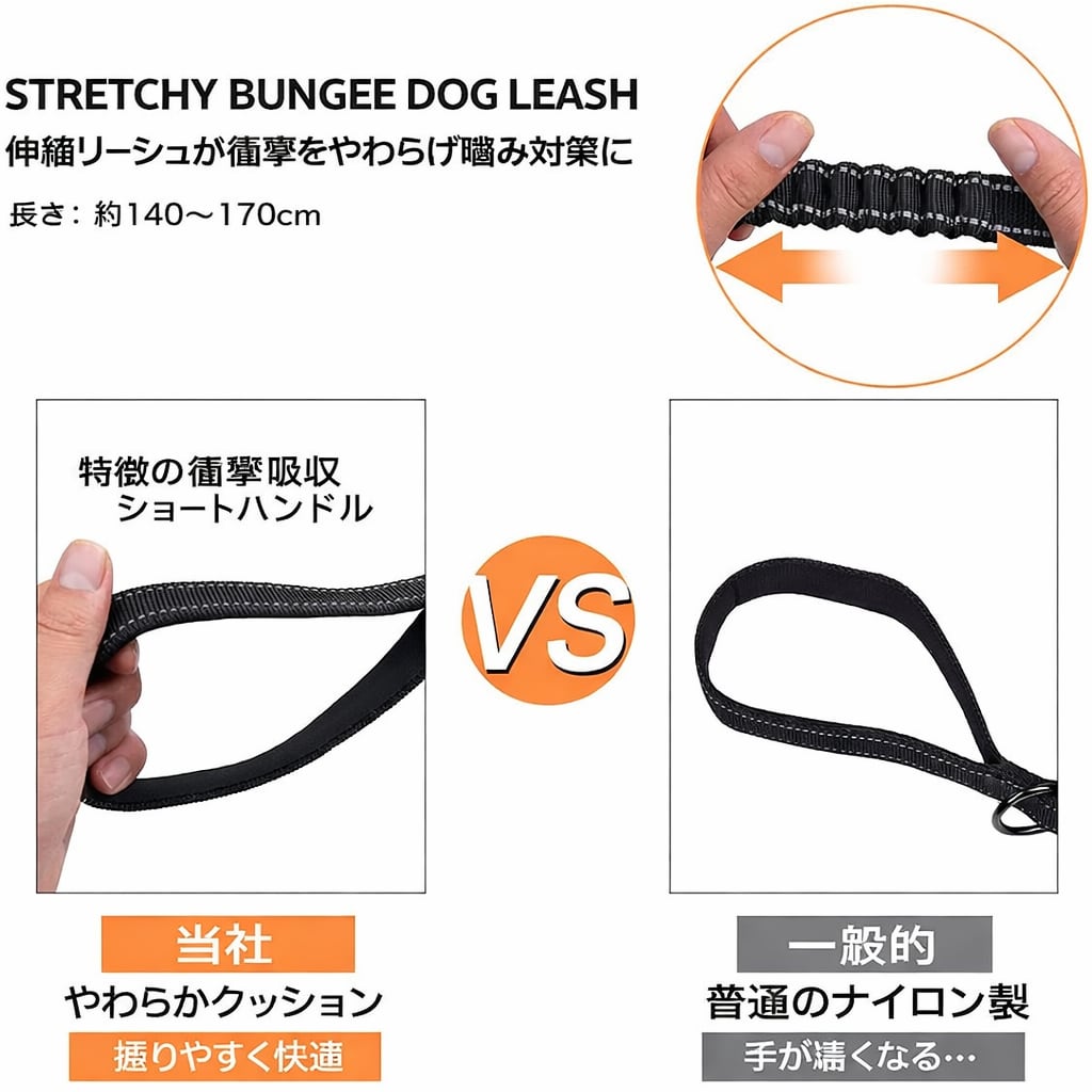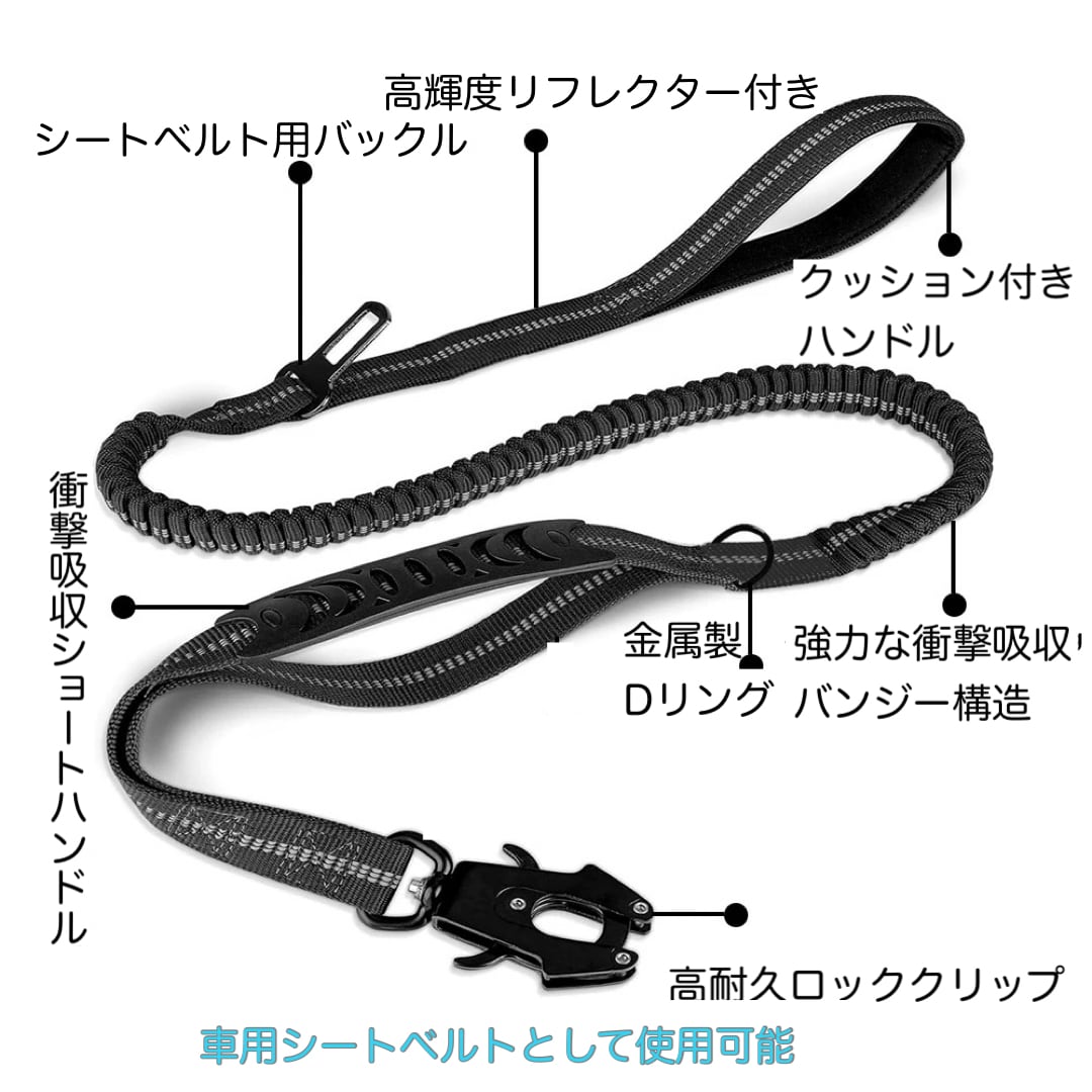 ・反射素材を使用しているため、夜間の散歩でも安全性が向上しています。持ち手は2ヶ所あり、ダブルグリップ仕様でしっかりと愛犬をコントロールできます!